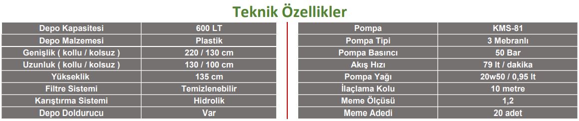 Kısmet Tarım - 600 lt Asılır Tip Tarla Pülverizatörü